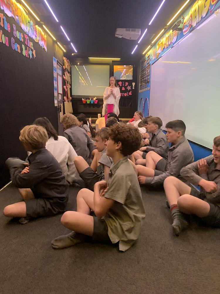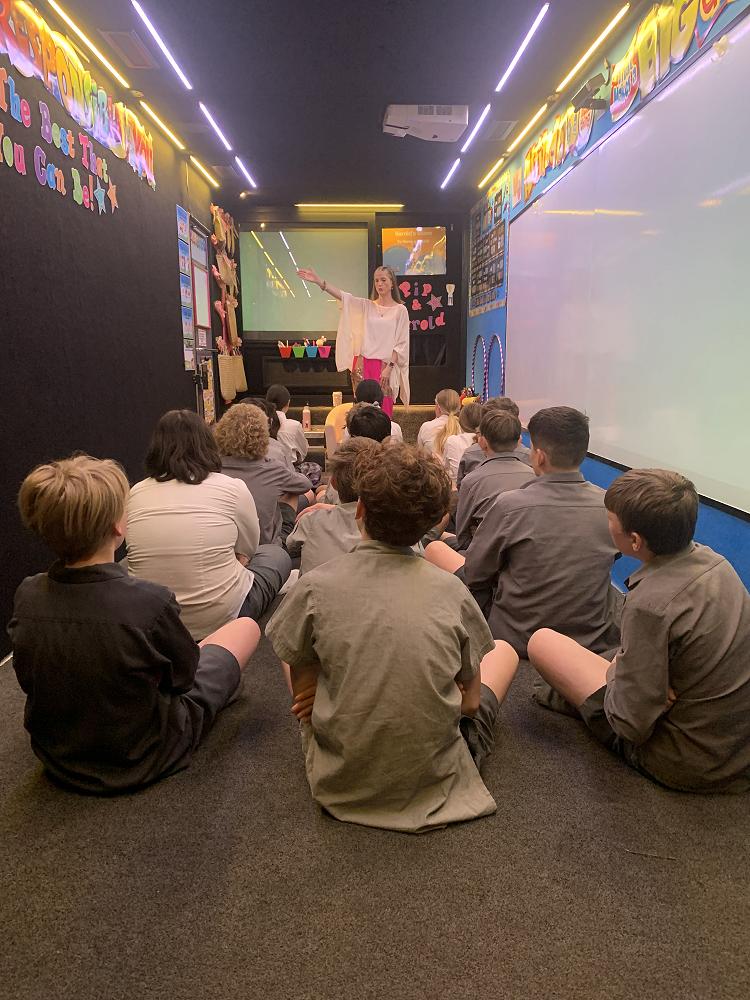 In week 9 the year 7 and 8 classes has the privilege of attending the Life Education bus with Pip, Rochelle, Harold and Harry.