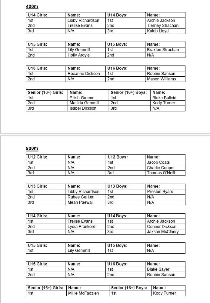 • Senior Girls 800m Record of 2.32mins held by Millie McFadzien (2025) broken by Millie McFadzien, running it in 2.30mins.