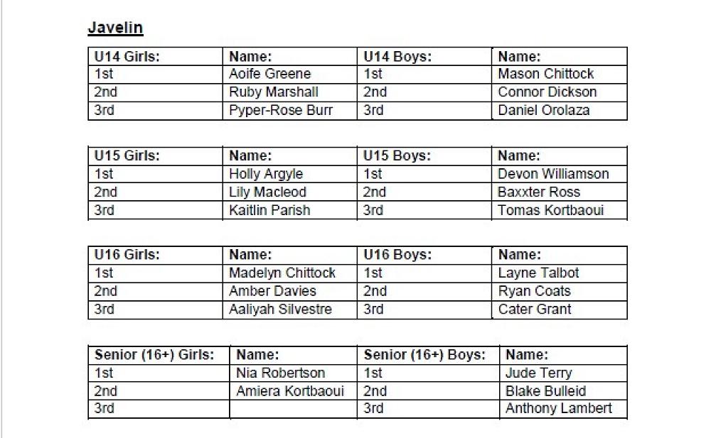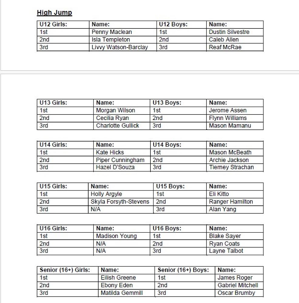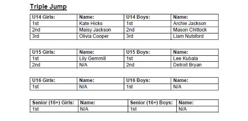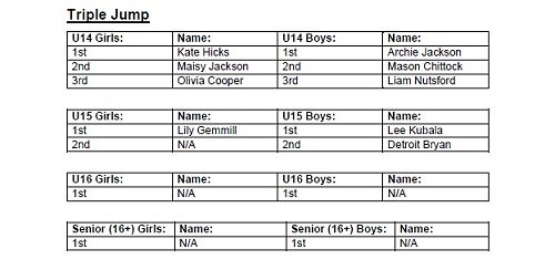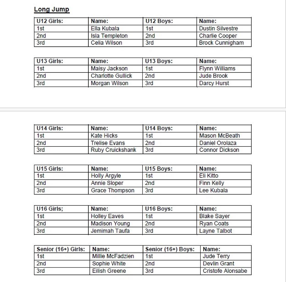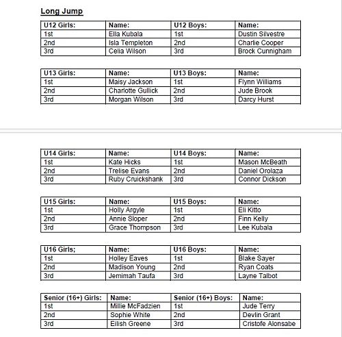 • Under 14 Girls Triple Jump Record of 8.18m held by Kate Hicks (2025) broken by