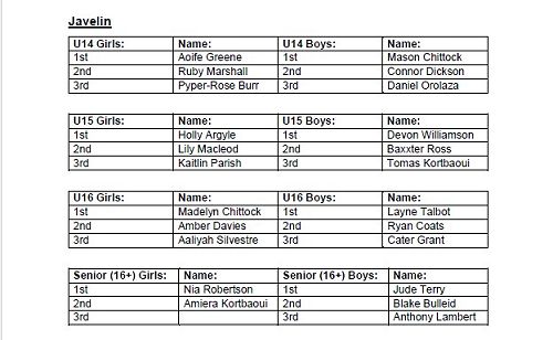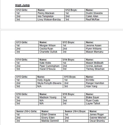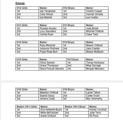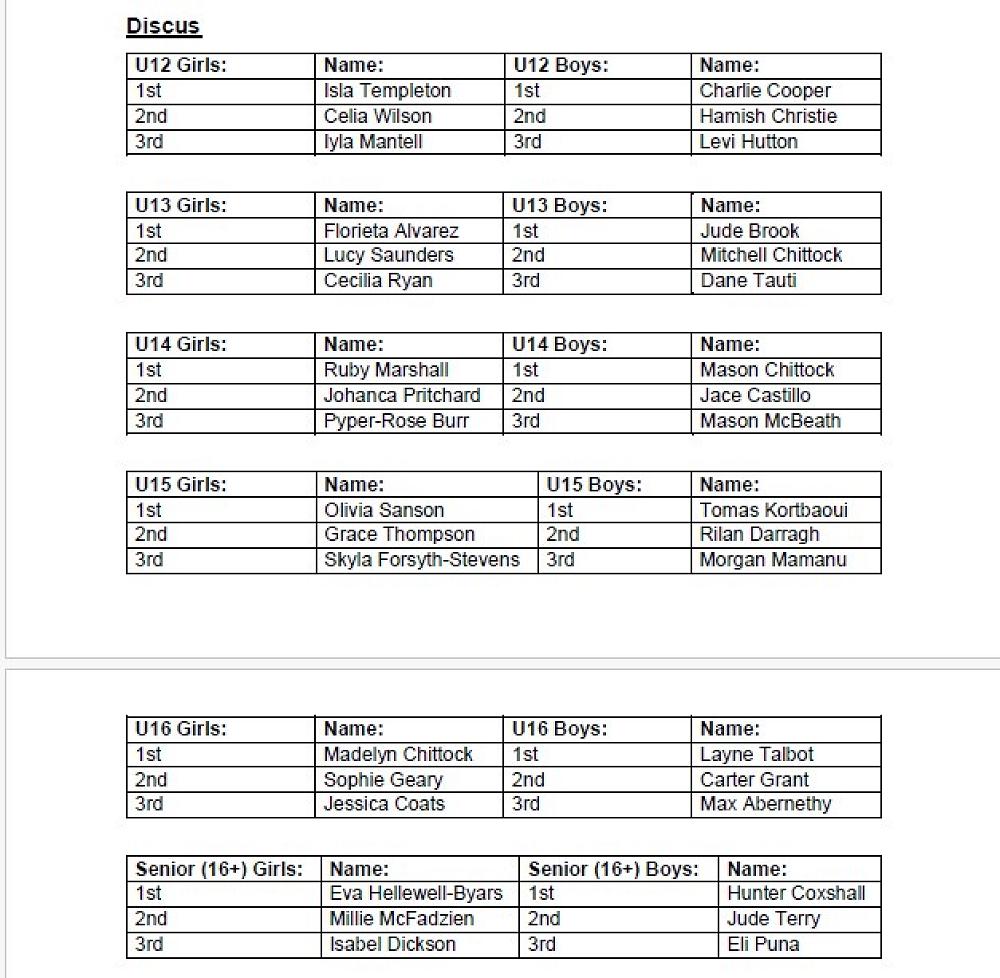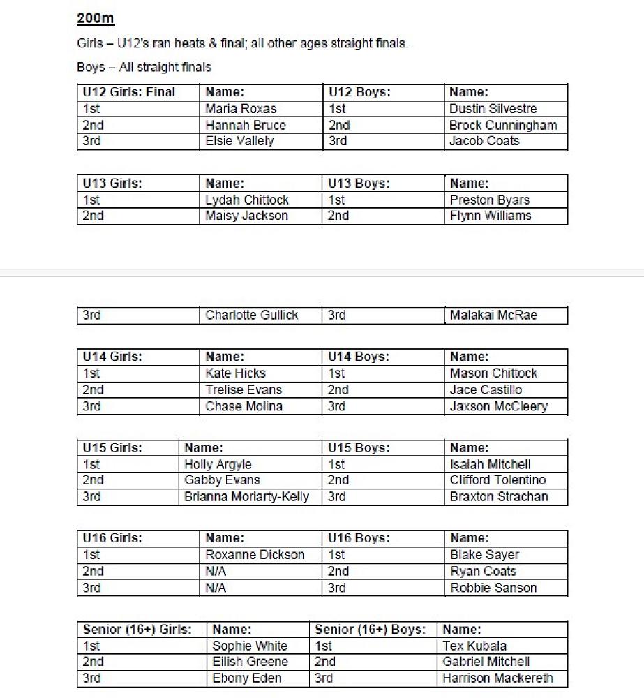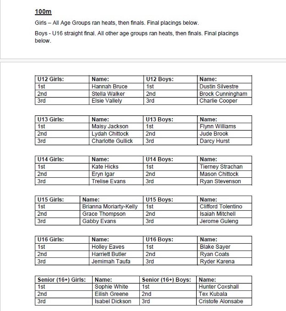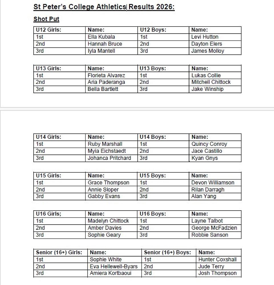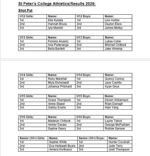 Congratulations also to the following students that have met the mark to go on and represent SPC at the Southland Secondary Schools Athletics that will be held on Saturday 14th March; Mrs Chittock will be in touch with you.
