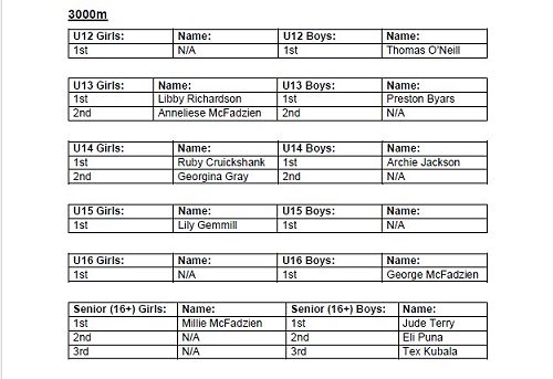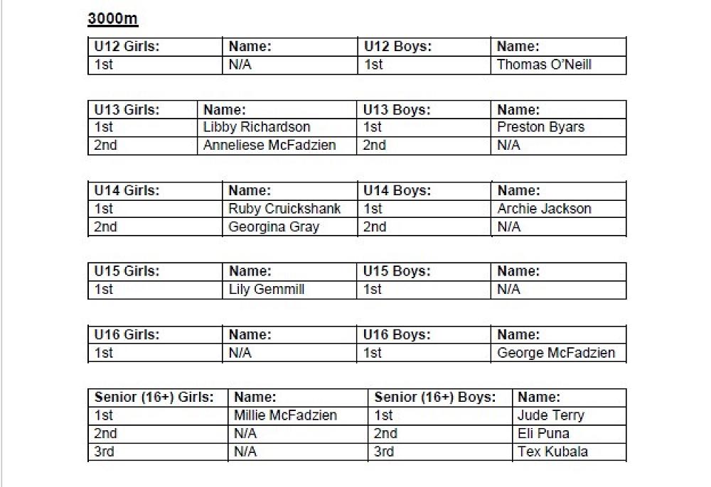• Senior Girls 3000m Record of 10.41mins held by Millie McFadzien (2025) broken by Millie McFadzien, running it in 10.26mins.