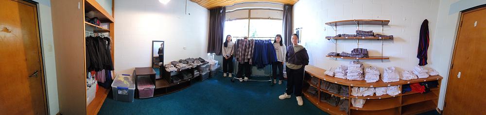 A huge thanks to Rosmini House for letting us use this space. Three hours of unpacking, sizing and folding and we now have a lovely space for our International students to try on everything from school uniform to thermals, jackets and camping gear, to ballgowns and suits.