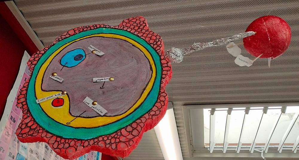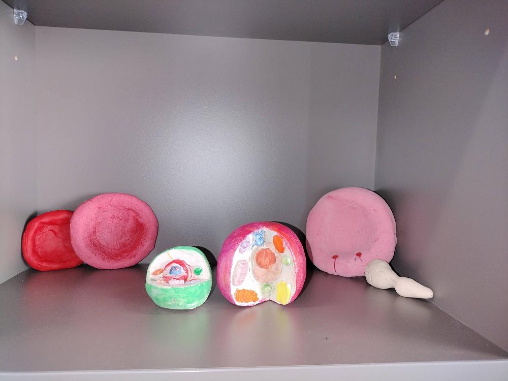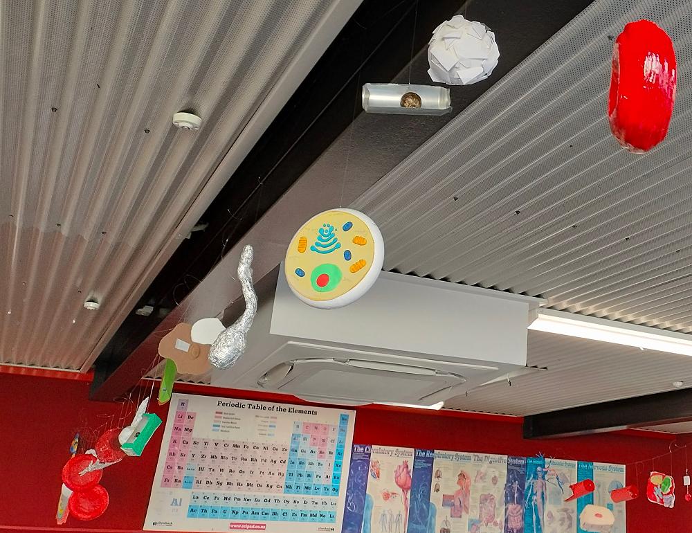 Mrs Thompson's Year 7 Science classes have been busy making model body cells. Their work is very detailed and the cells include reproductive cells, skin cells, body, blood and nerve cells. They make a very colourful display in the Science lab.