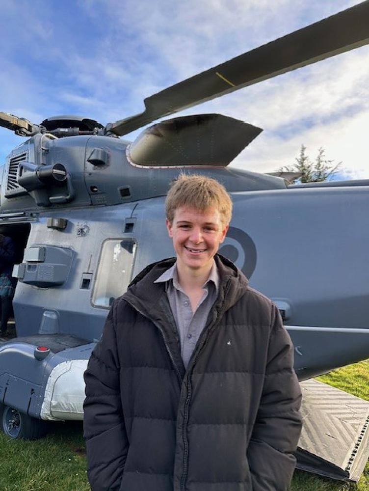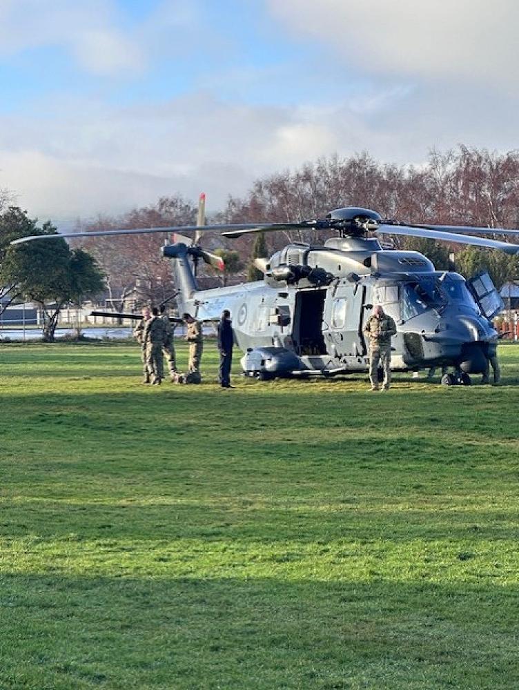 This week a group of interested students were treated to a visit of the Defence Force NH90 chopper, which landed at Maruawi College.