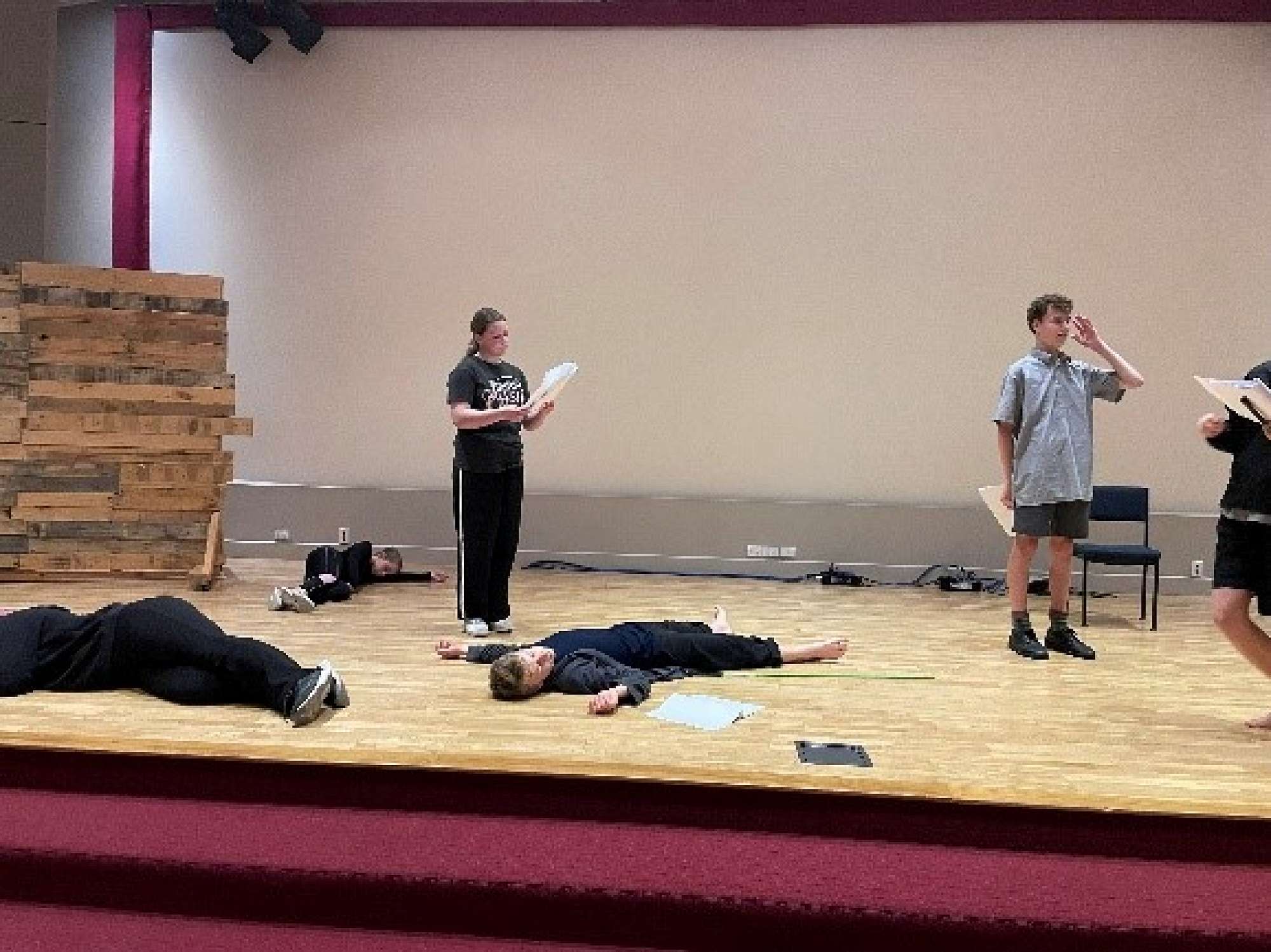 Photos here are of their run through of a 10 minute version of Othello. Thank you to the Calvin Church for allowing us to use their stage!