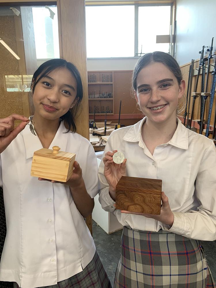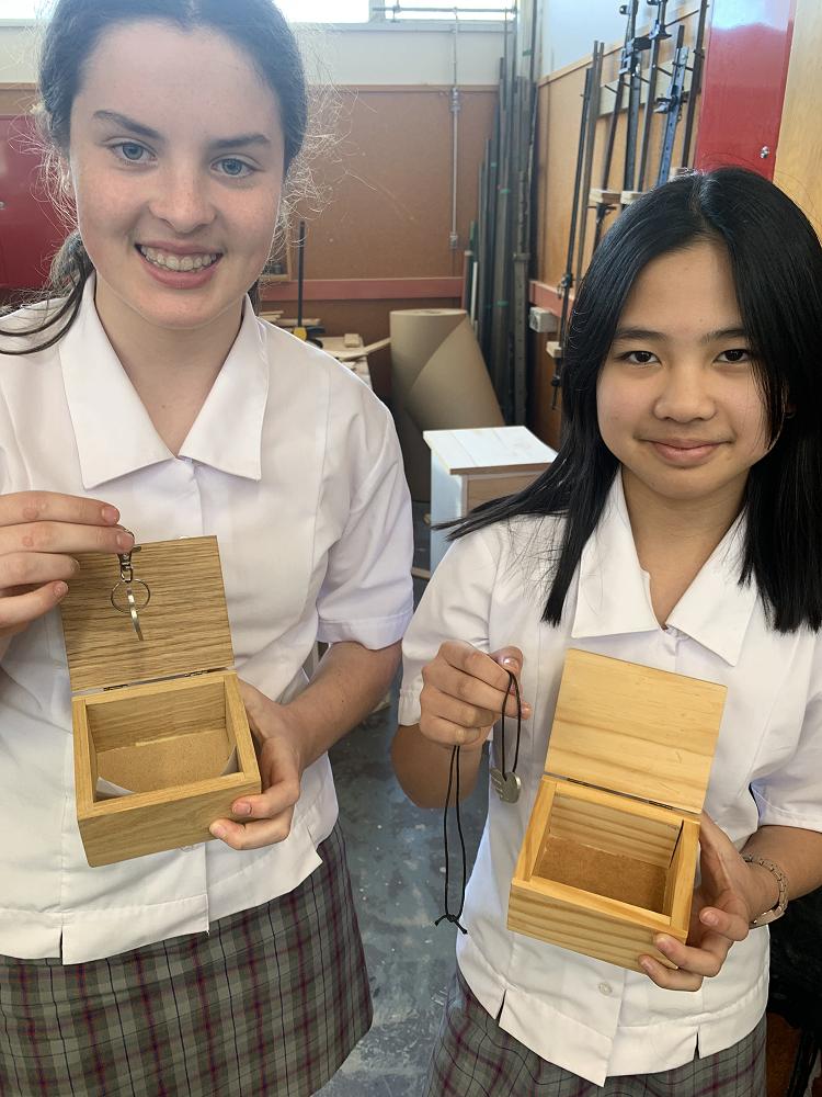 In Year 8 for Materials, students complete two practical tasks. The first requires students to use pewter to create a design of their choice within the specifications given. The second requires students to design a wakahuia (treasure box) using the specifications given.