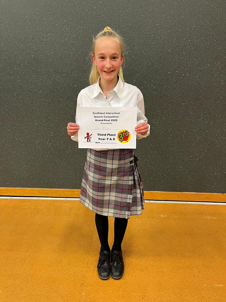 Liliana McGregor delivered her speech on Gumboots at the finals of the Southland Speech Competition. Against some very strong competition, she placed third - a fabulous and very well-deserved result.