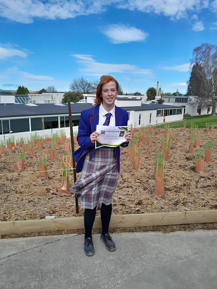 Congratulations to Eilish Greene (Year 11) who has won our 'Tiny Forest' sign design competition. Eilish is shown standing in front of our 260 square metre planting site beside the chapel steps. Eilish's entry is a creative digital medley of plants and animals found in our New Zealand forests, with a focus on the kinds of creatures we hope to eventually see here in our forest. It will be professionally printed by SignAd. We hope to have Eilish's design in place by the end of term.