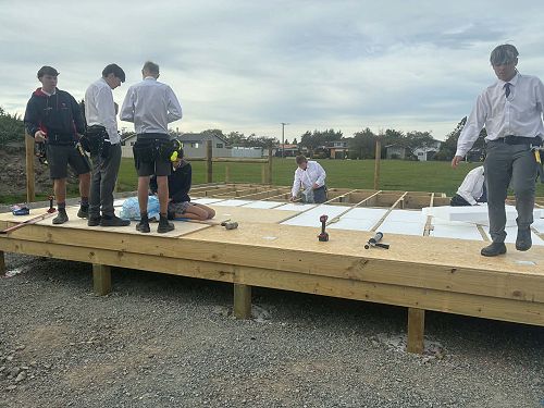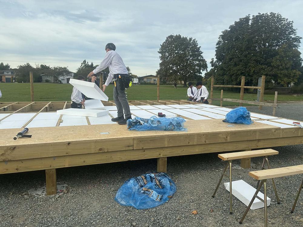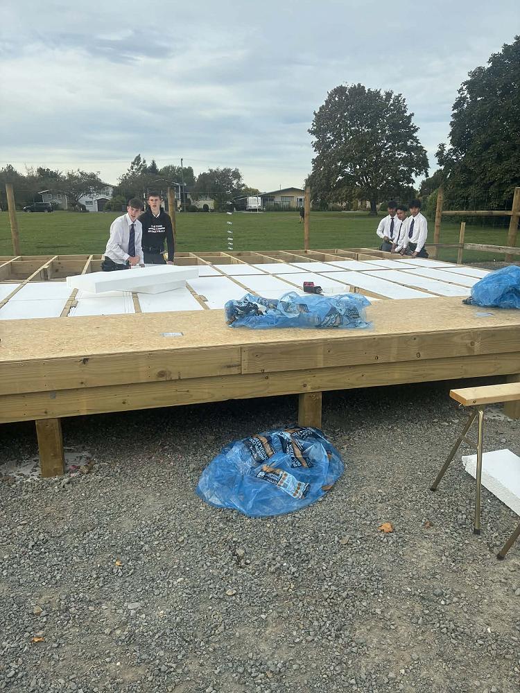 Progress on our house build. The students installed the underfloor insulation and the floor for the house.