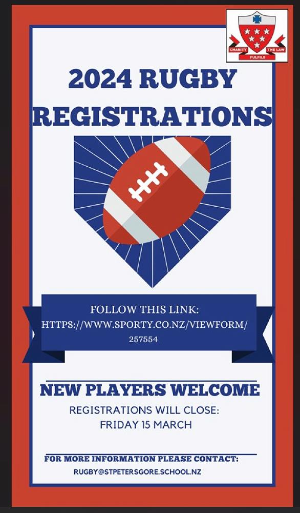 This is for our A grade players (Y7 & 8) right through to our senior First XV level players. No players are able to take the field without being registered. If you are new to SPC this year and are keen to give rugby a go, sign up and see what you think.