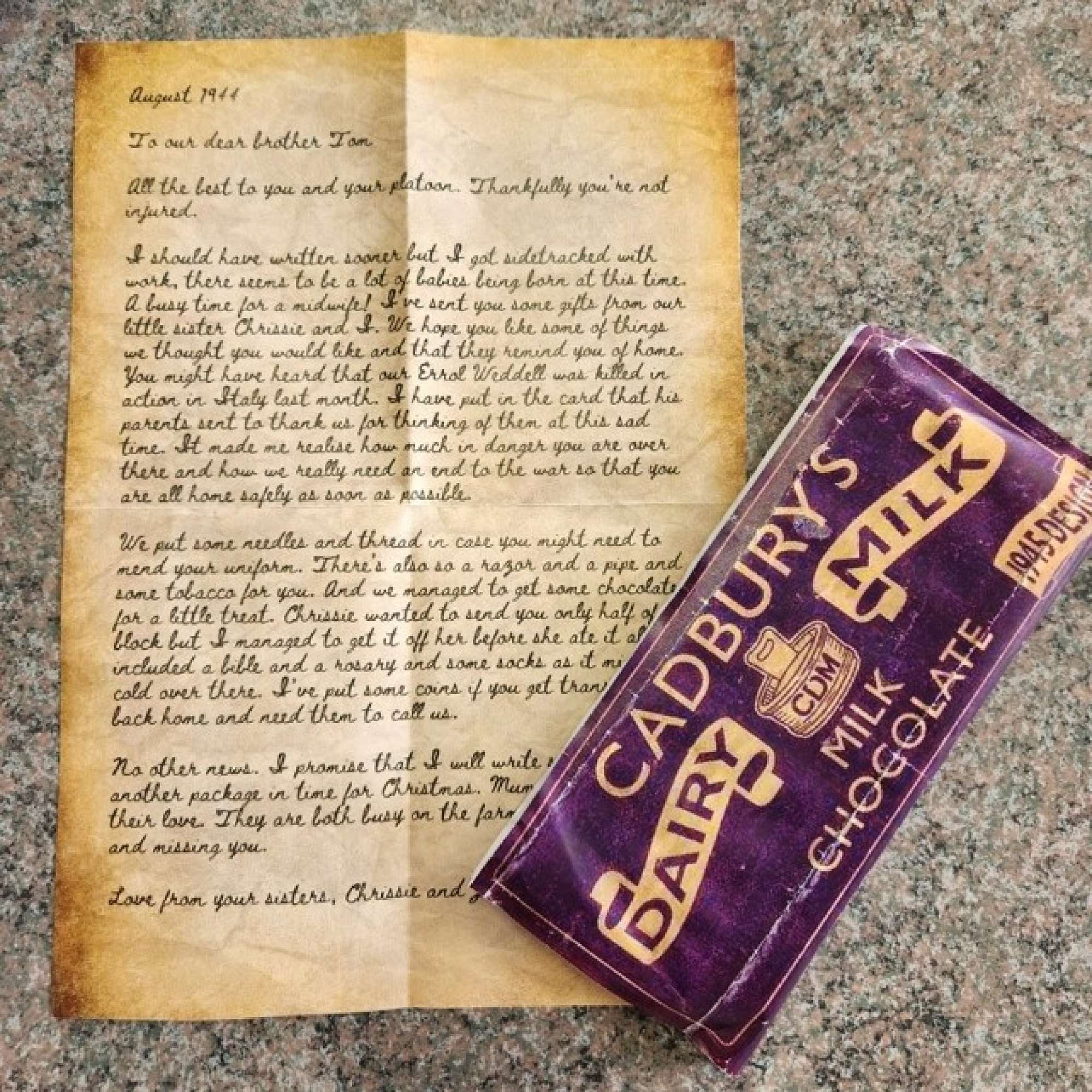 - a letter written by me from the perspective of his sister Chrissie to help him keep his spirits up in war time.