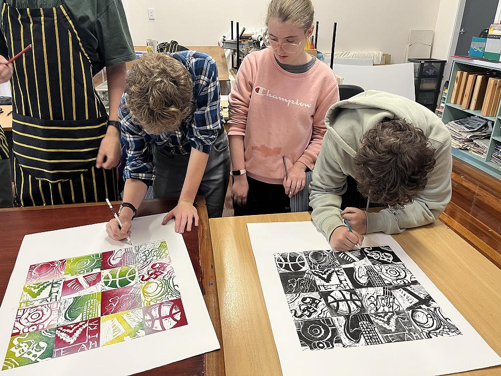 On Thursday the 3rd of April a group from the Year 11 Art classes spent the day at the Art Centre on Rock Street. There we worked with Jacque Byars on printmaking. Our topic was “Things that remind us of home”.