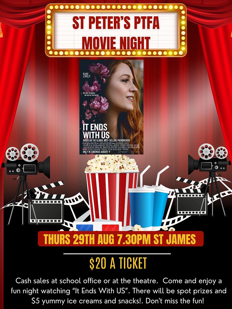 Please come along to our movie night at St James Theatre next Thursday the 29th August to support the PTFA's fundraising efforts!