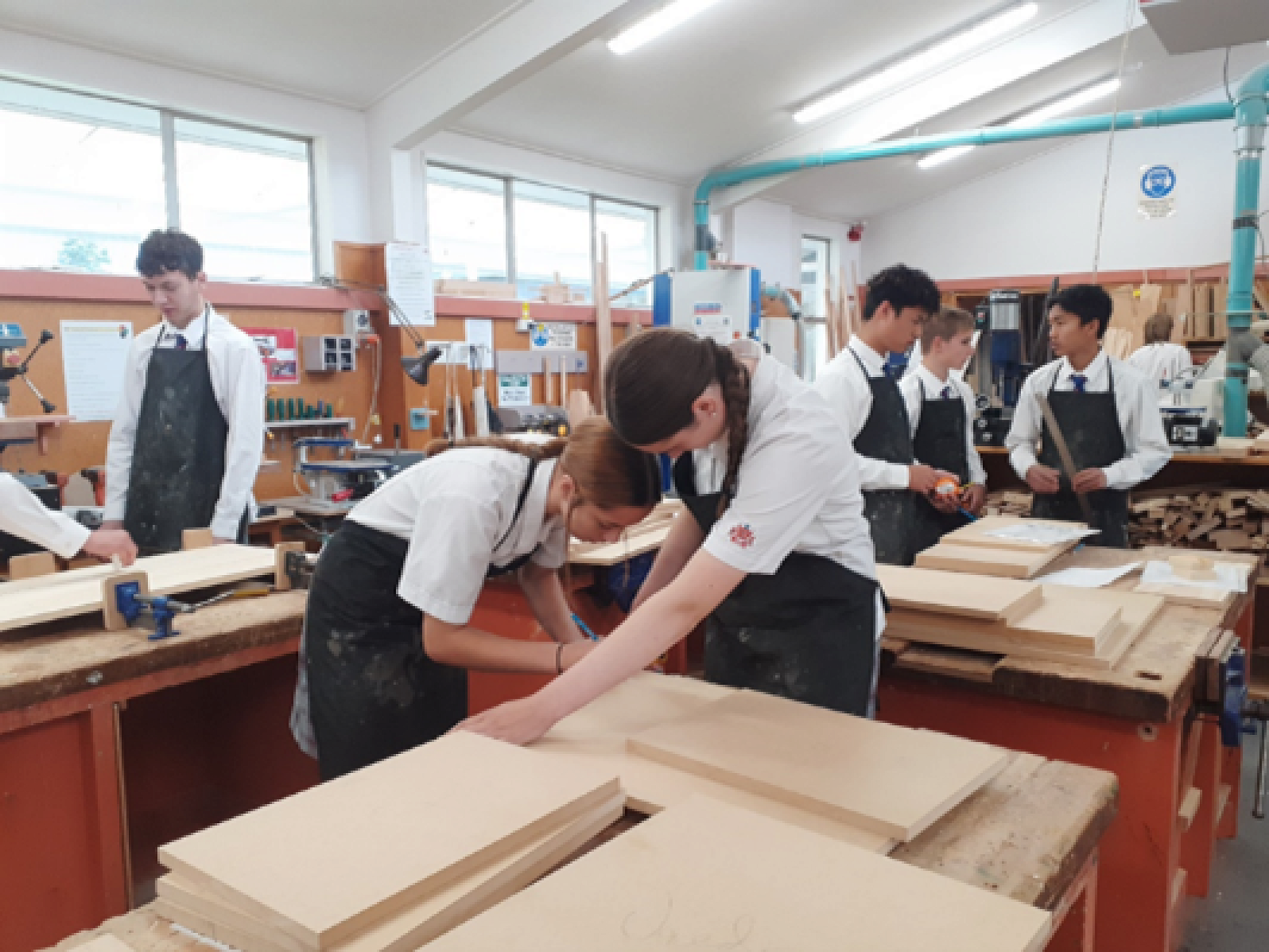 Materials Technology, Food and Nutrition and Physical Education are three of the largest classes at Year 11 this year. Talking with some ākonga in this class, they declared themselves to be “practical learners who prefer hands-on learning” which is why several had chosen to do Materials Technology, Physical Education and Agricultural Science or Foods and Nutrition. They valued the fact that they were able to “do Maths stuff in ‘Wood’, like measuring and getting angles right” and not having to be behind a desk! Having completed their concept drawings, they were getting into preparing for the construction of a piece of furniture “which is cool because I get to keep it at the end.”