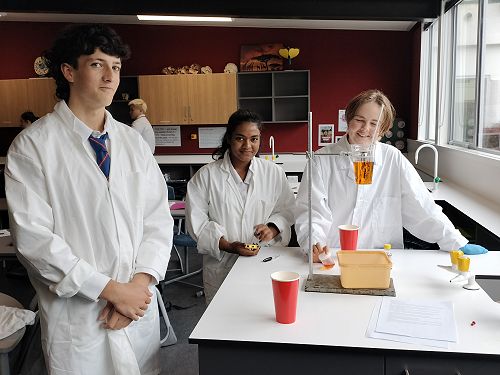 The Year 13 Biologists are studying homeostasis, how the body maintains a stable environment. They carried out a practical where a drinking cup was used as a model body, filled with a coloured liquid that was leaking through a pinhole. Their challenge was to keep the liquid level in the cup at a constant volume, temperature, and concentration. They all succeeded admirably and deepened their understanding of how the body performs its internal control.
