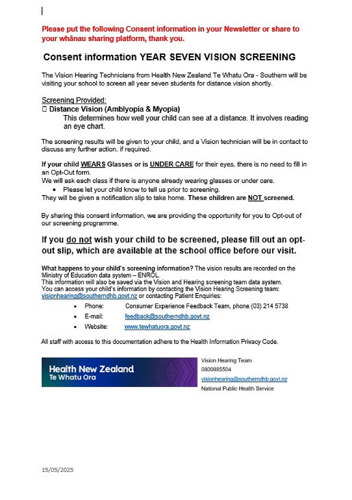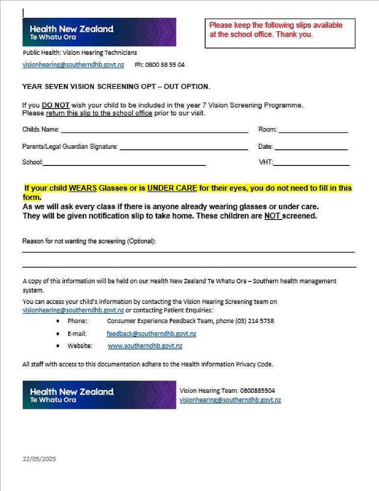 The Health New Zealand Te Whatu Ora Vision Hearing Technicians are going to visit your school twice this year. The first visit is planned for: