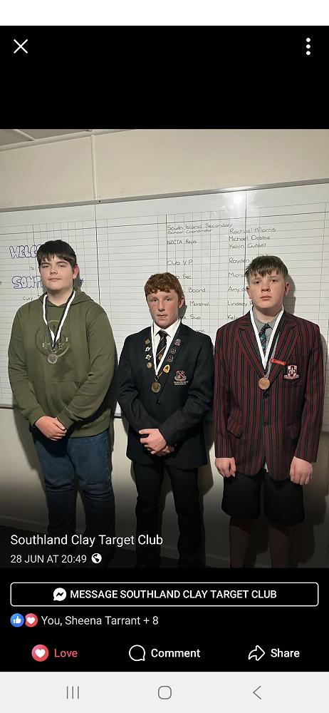 Cian Smith competed at the South Island Secondary Schools Clay Target Champs held in Invercargill on 28th June.