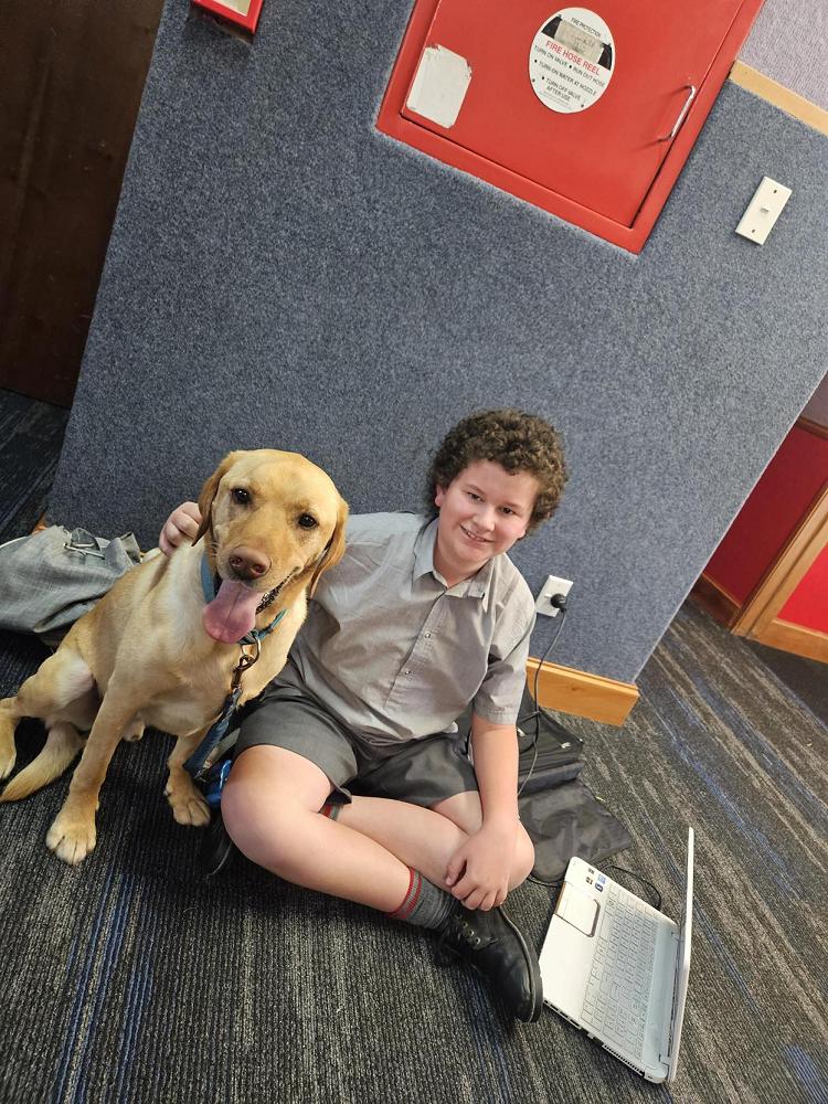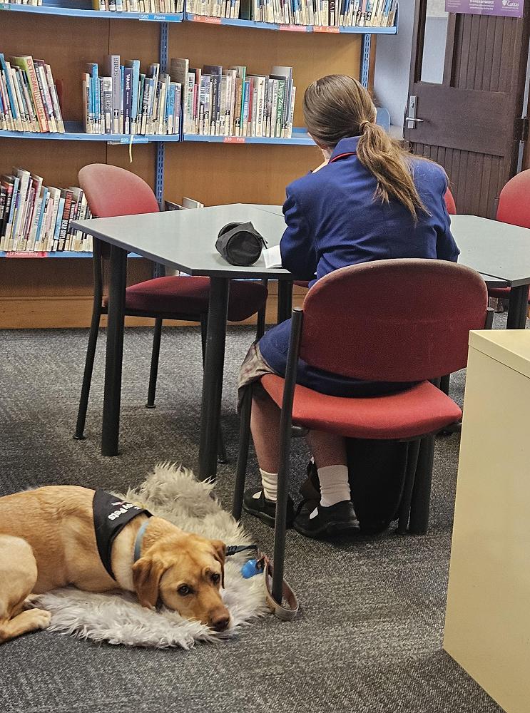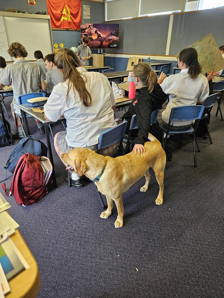 The student's are all enjoying getting their daily pats in, and Bruce is loving all the attention! Some quotes from our students so far are "he makes my day better", "he is joy!", "It motivates me to do my work, then I might get a pat", "reminds me of my dog, which makes me smile", "Just having him around is calming"
