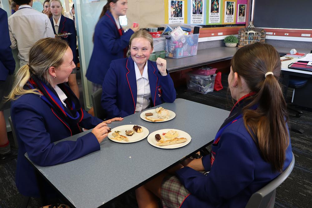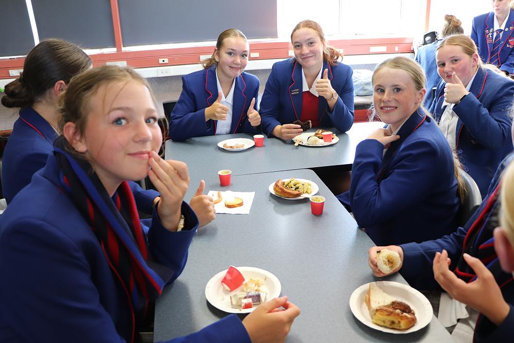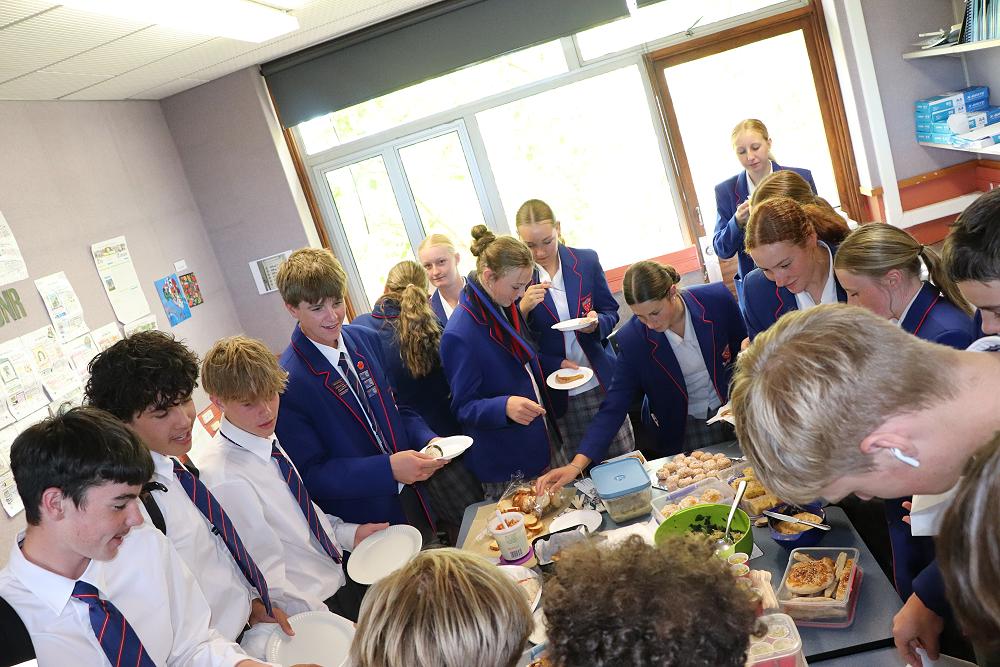 By the end of lunch, nearly all the food had been eaten, with some going back for fourths and fifths! Many teachers joined us and commented on the wide range of unique dishes and all the effort that had gone into making them. One student, Emma, said, “I liked trying new food, and I enjoyed making something for my class. It was a fun and different shared lunch.” The majority of the class had positive feedback.