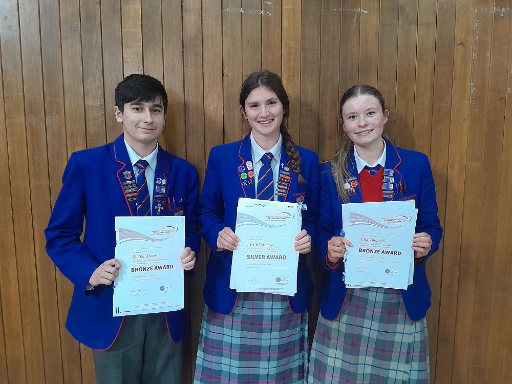 Congratulations to Andrei Morus (Year 11), Ava Wiegersma (Year 12) and Ella Donnelly (Year 11) who were presented with certificates and badges at assembly this week. Andrei and Ella completed the Bronze level of the Award earlier this year. Ava has completed Silver. Any student turning 14 this year can register for 'Duke of Ed' by going to the New Zealand website (https://dofehillary.org.nz/). You can start it at any time. It's a great way to give back to your community but also counts as an internationally recognised accomplishment valued by employers and education providers. Check it out.